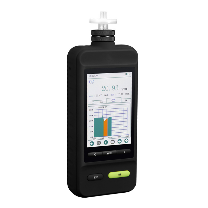 本产品是一款手持便携式气体检测仪器。仪器可灵活配置单种或多种气体传感器(可同时使用4种气体传感器):采用3.5寸高清IPS液晶彩屏,150度宽广可视角,中英文操作界面,声、光、振动三种报警提示,可选配跌倒报警功能让地下作业人员的安全得到保障;进气口标配防水防尘过滤器,不仅适用日常周围空气同时也适用于潮湿、多灰尘的恶劣监测环境;内置可调十档流量的气体采样泵,可为不同检测环境定制气体检测流量,能在6m/S高速气流下正常检测;抗电瞬变脉冲干扰能力强、兼备物联网扩展功能、大容量锂电池待机时间长;仪器外壳采用高强度工程材料,独具匠心的外形设计兼顾实用人体工程学操作。